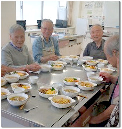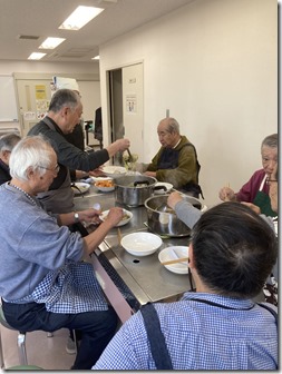 保存の効くものは前日に買い揃え、お肉、野菜等は当日に会場の隣にあるスーパーで買う事にして、早めに自宅を出発、いつもは忙しい思いをして走り回っている状態なので、今回は2品しか作らず比較的単純な料理なので、調理台は1つにして、参加者全員が余裕をもって作業をすることが出来るいい機会になるかなと思っていたのだが、餅を焼こうとしたらグリルもオーブンも無い、電子レンジがあったので、オーブンと言うボタンを押して使っても、焼けることはなく、溶けてしまって、今日も失敗をしてしまった。